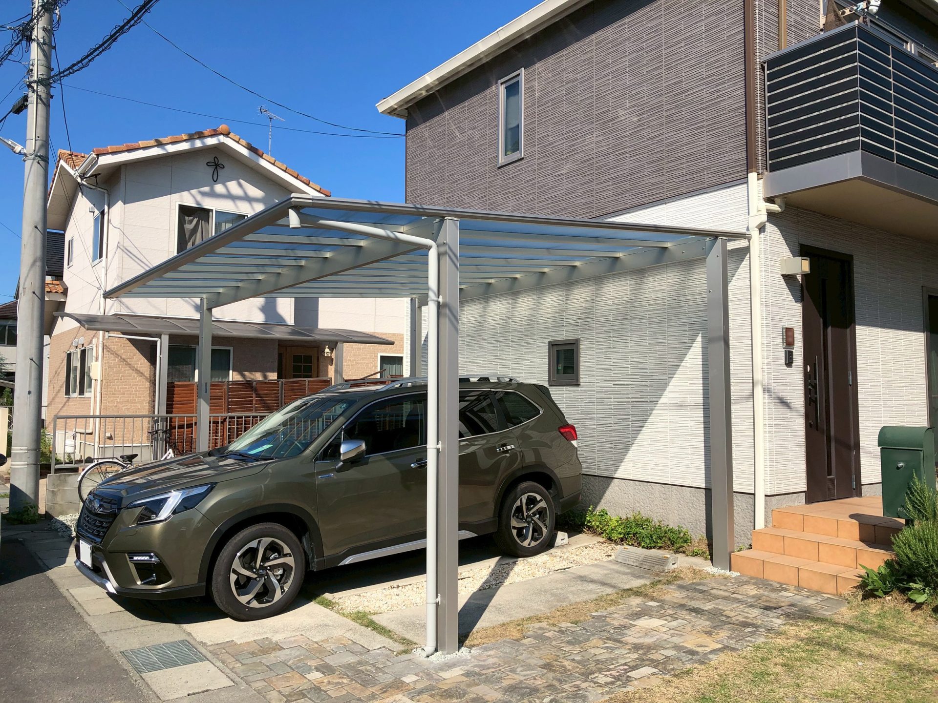 また、駐車場にはカーポートを設置して悪天候や日差しからお車を守り、快適に乗り降りができるようになりました。