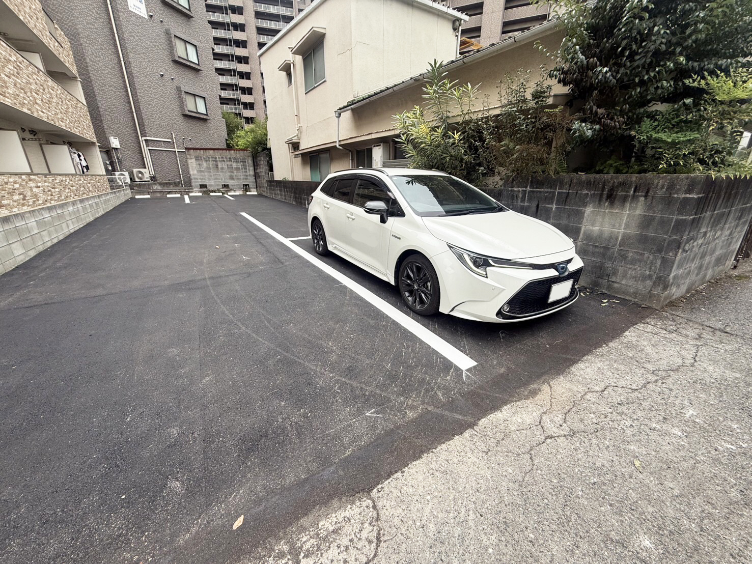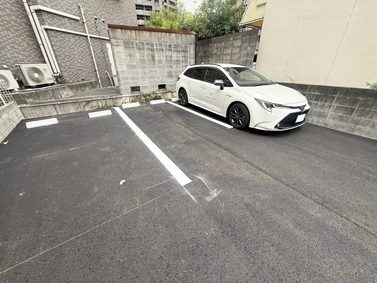 縦列駐車の区画には、車の出入りや切り替えし時等に邪魔にならないように、片側のみの車止めを設置しました。